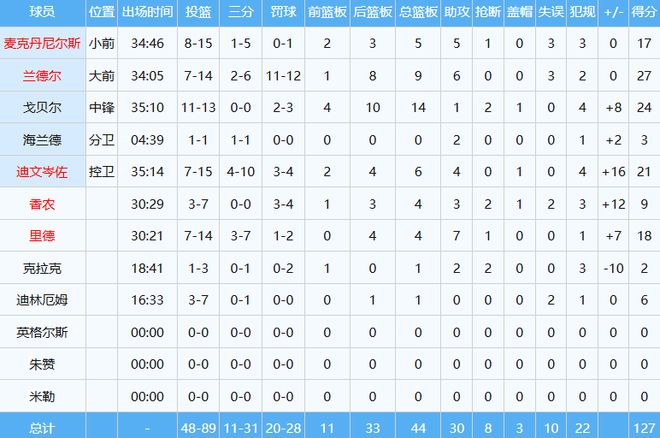 时隔五场比赛,库里重新披挂上阵,投篮28中14,其中三分15中6独揽39分5板5助,可惜难救主,勇士120-127不敌森林狼,战绩来到13胜13负排名西部第八。